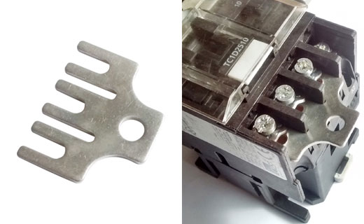The present of MCB busbar changed the outdated connection ways of Miniature circuit breaker (MCB) to a new connection way with the characteristics of wider contact area, low power consumption and low temperature-rise.